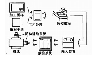 CNC車削數控機床的工作原理如圖1-2所示。在CNC車削數控機床上加工零件時,首先要將被加工的零件的狀態、尺寸及工藝要求等,(導讀:大朗數控車床CNC車削加工工藝概述 http://www.whsygw.com/Article/dalangshukongchechua_1.html)采用手工或自動程序編制,并將這些程序儲存在控制介質上(磁盤、光盤、磁帶等),然后,經過輸入裝置,讀出信息并送入數控裝置。在數控系統控制軟件的支持下,經過處理與計算后,發出相應的指今,通過伺服系統經傳動機構驅動機床有關部件,使機床的刀具與工件及其它輔助裝置按預定的加工程序進行運動,從而加工出符合要求的零件。