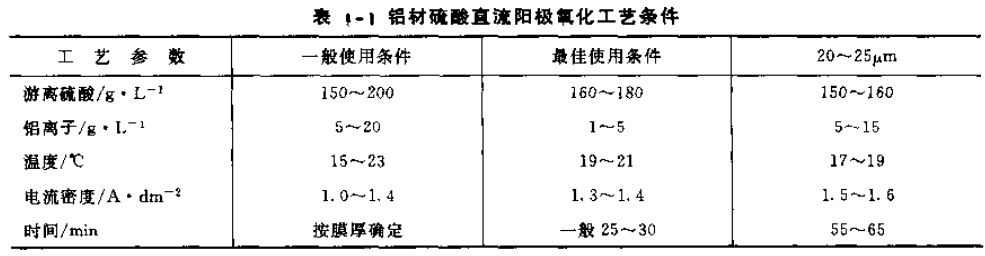 ⑤硫酸陽極氧化工藝條件參見表1-1,工藝條件的選擇應根據陽極氧化工件的形狀和對膜厚、膜質量要求等決定,對現有的廠同時要考慮自身的設備能力。