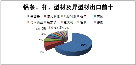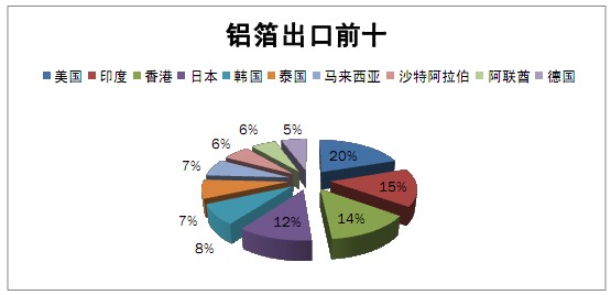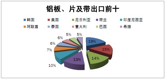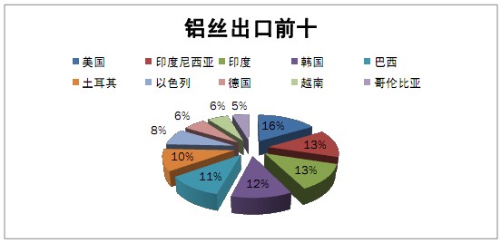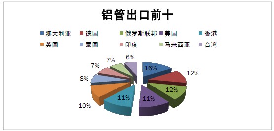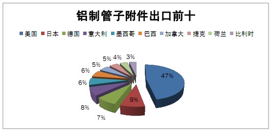 2011年鋁件加工產品出口主要國家如下圖統(tǒng)計: