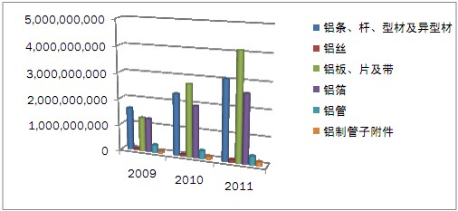 由于鋁件加工制品種類繁多。據(jù)海關信息網統(tǒng)計列出以下六大類鋁條、桿、型材及異型材,鋁絲,鋁板、片及帶,鋁箔,鋁管。鋁制管子附件。