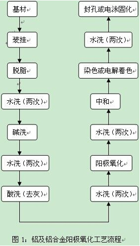 陽極氧化處理是利用電化學的方法,在適當的電解液中,以合金鋁件為陽極,不銹鋼、鉻、或導電性電解液本身為陰極,在一定電壓電流等條件下,使陽極發生氧化,從而使工件表面獲得陽極氧化膜的過程。按其電解液的種類及膜層性質可分為硫酸(可以著色)、鉻酸、(不需著色)、混酸、硬質(不能著色)和瓷質陽極氧化;根據各種陽極氧化膜的染色性能,只有硫酸陽極氧化獲得的氧化膜最適宜染色;其他如草酸、瓷質陽極氧化膜(微弧氧化)雖能上色,但干擾色嚴重;鉻酸陽極氧化膜或硬質氧化膜均不能上色;綜合所述,要達到陽極氧化上色的目的,僅有硫酸陽極氧化可行。