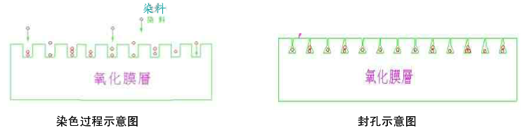 染色:依據客戶要求,生產出顏色、外觀漂亮的外殼。染料被吸附在孔隙表面上并向孔內擴散、堆積,而且與陽極氧化鋁進行離子健、氫鍵結合而使膜層著色。