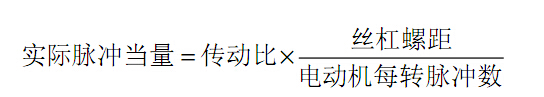 實際脈沖當量決定于絲杠螺距、電動機每轉脈沖數及機械傳動鏈的傳動比,其計算公式為