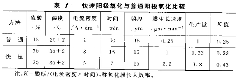快速陽(yáng)極氧化與普通陽(yáng)極氧化比較見(jiàn)表1.