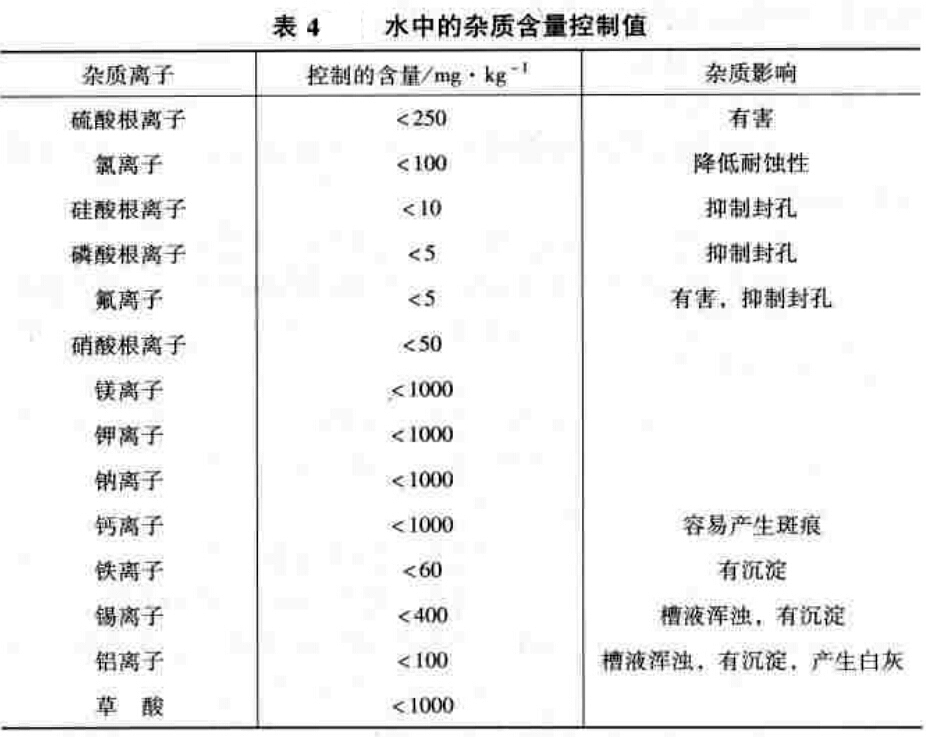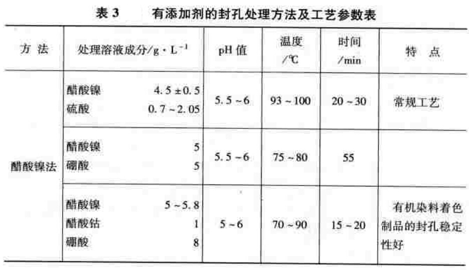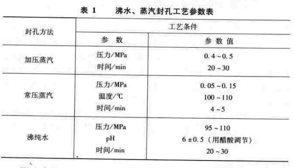 如果醋酸鈉為封孔添加劑時,可放寬到小于500mg/L。當(dāng)用其他方法封孔不合格時,可添加1%的醋酸鈉進(jìn)行再封孔處理15min,可以使封孔合格。